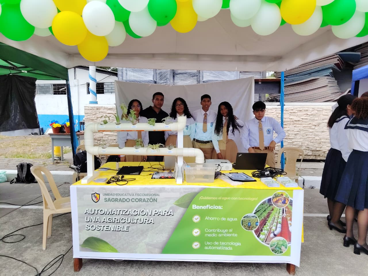 La Unidad Educativa Fiscomisional Sagrado Corazón participó en la feria tecnológica con el Tema: Automatización para una agricultura sostenible. La feria se llevó a cabo en la Armada Del Ecuador Liceo Naval De Esmeraldas Valm. Manuel Nieto Cadena.
